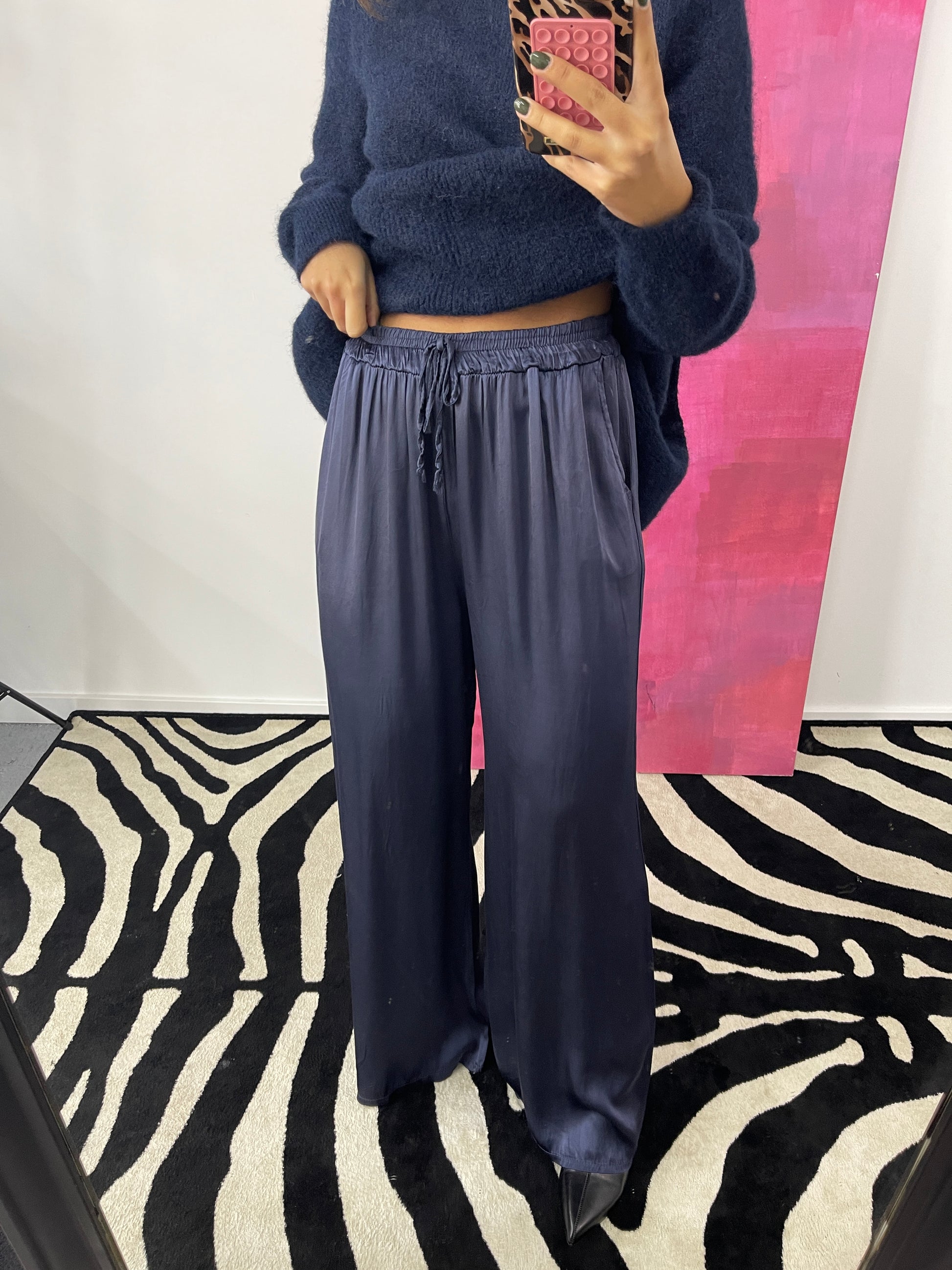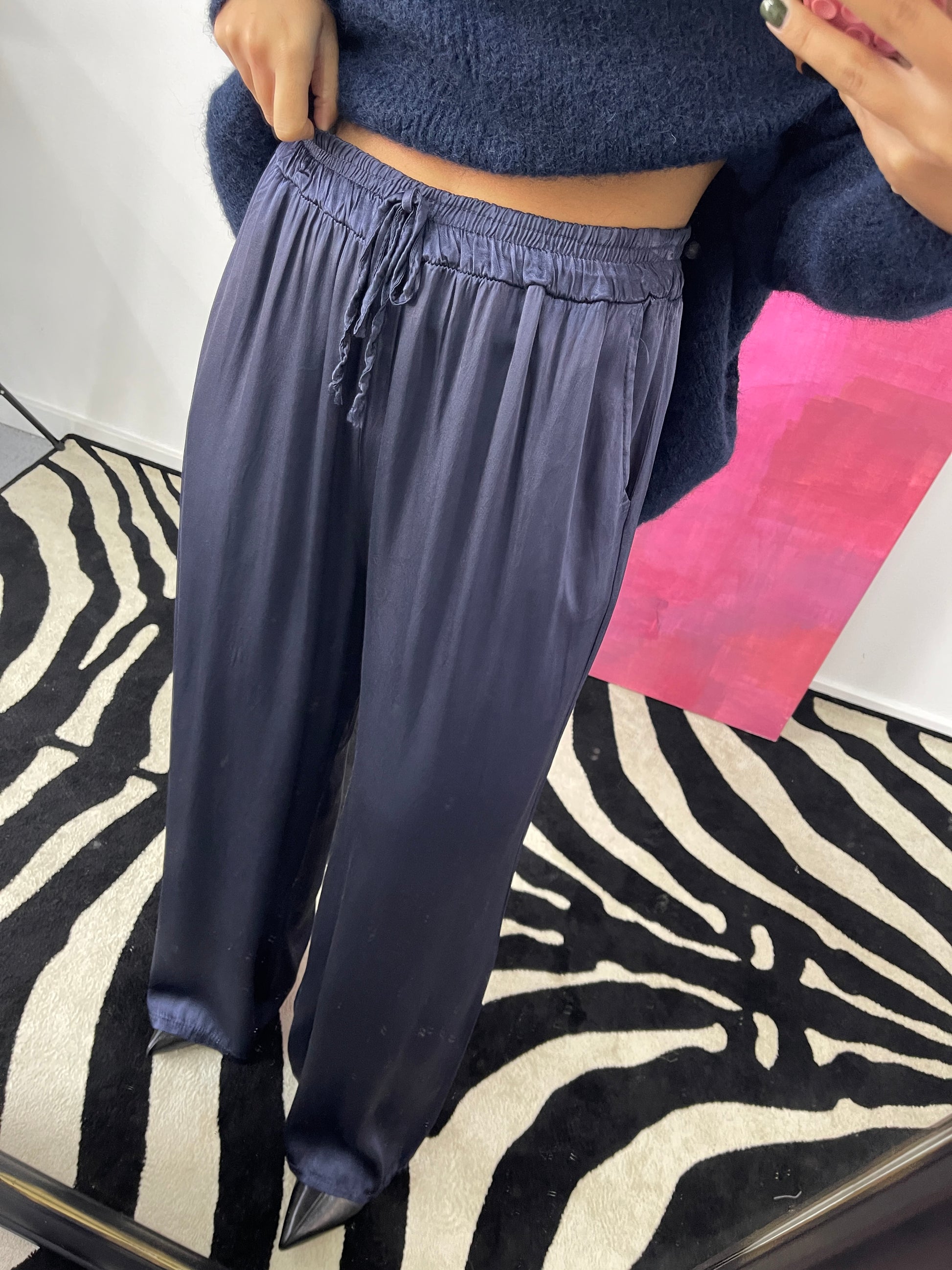 Calças Cetim Marinho
